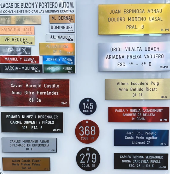 Placas de buzón a medida, señalización de tráfico y todo tipo de grabados profesionales.
